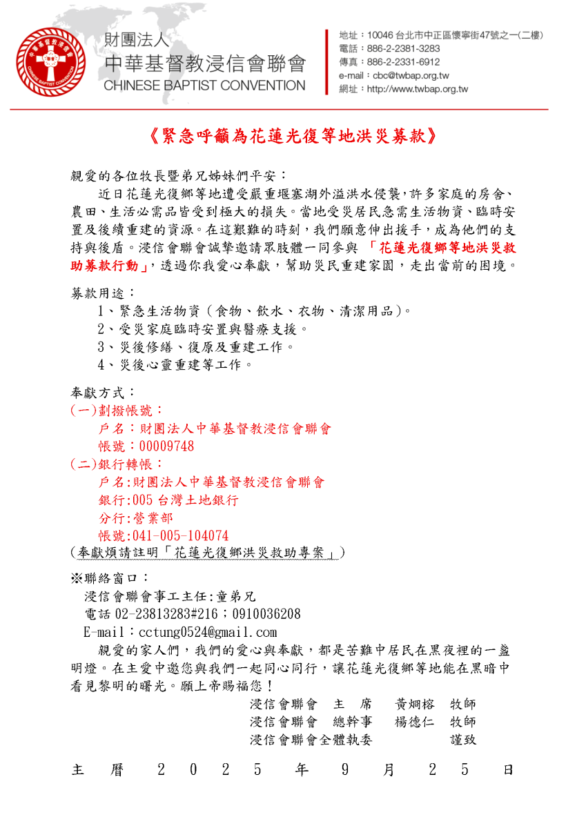 洪災募款信(中文版)